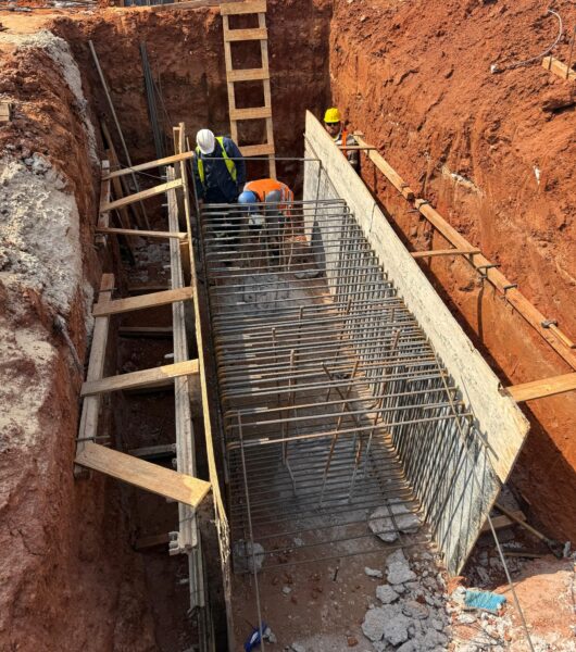 Actualmente, la construcción se encuentra en fase de fundaciones, que incluye la colocación de pilotes y cabezales, y se ejecutan excavaciones para la futura planta de tratamiento de agua, indispensable para el funcionamiento del centro de manera sostenible.