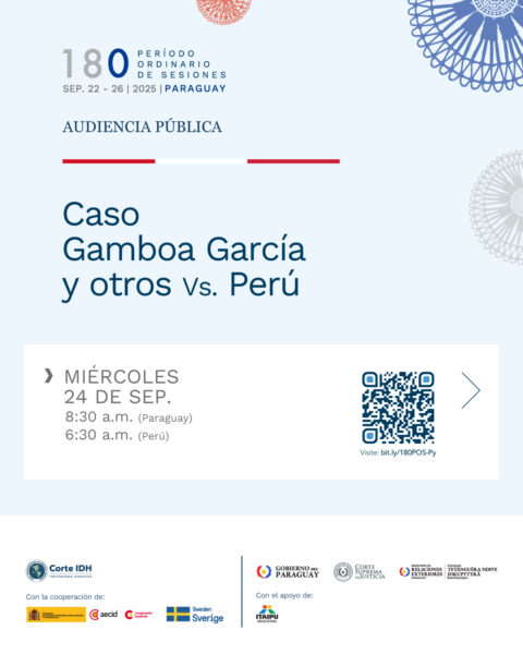 El miércoles 24 de septiembre, la Corte IDH sesionará en torno al caso “Gamboa García y otros Vs. Perú”, a las 8:30. Posteriormente, del 29 de septiembre al 3 de octubre, la Corte IDH continuará sus sesiones de manera virtual, dedicadas a deliberaciones.