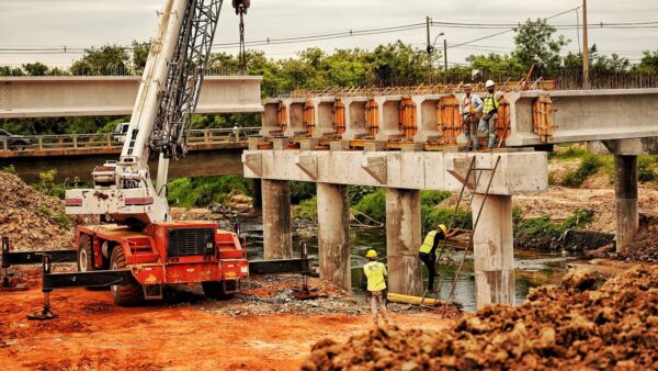 Este proyecto contempla varios frentes activos en distintos sectores: el puente de 60 metros sobre el arroyo Itay, con fundaciones finalizadas y estribos en ejecución; el sistema de drenaje, con más de 450 módulos de alcantarillas instalados; el cerco aeroportuario, con un avance significativo; y los movimientos de suelo y terraplenes en los primeros 600 metros de la autopista, además de la preparación de la base vial que sostendrá la futura calzada de cuatro carriles.