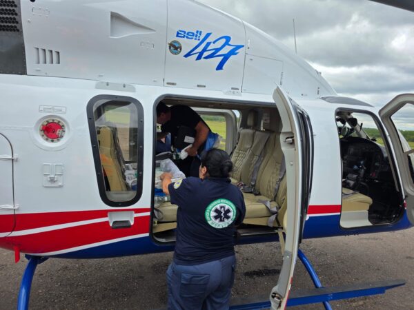 Además, la Fuerza Aérea Paraguaya puso a disposición dos helicópteros –un Bell 407 y un Bell 427– para el traslado aéreo de dos pacientes pediátricos en Unidad de Terapia Intensiva (UTI), acompañados por un equipo de profesionales del Servicio de Emergencias Médicas ExtraHospitalarias (SEME).
