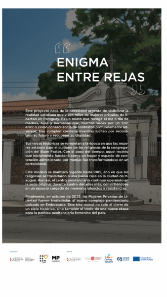 La muestra “Memorias del Buen Pastor: 106 años de historia”, se inaugura en la fecha -15 de diciembre- y se extiende hasta al domingo 21 de diciembre, hasta las 20 hs, para que la ciudadanía pueda recorrer el excentro penitenciario. La entrada es libre y gratuita. La organización está a cargo del Ministerio de Justicia y el Proyecto Social Corazón Libre del Movimiento Peregrino, con apoyo de la Secretaría Nacional de Cultura, Municipalidad de Asunción, el Centro de Estudios Judiciales y con financiación de la Unión Europea.