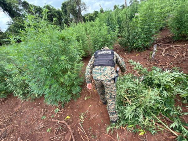 En un operativo antidrogas realizado en una zona rural denominada Rincón, en la ciudad de Capitán Bado, departamento de Amambay, fueron destruidas plantaciones y más de 1.600 kilos de supuesta marihuana, además de campamentos precarios utilizados para la actividad ilícita.