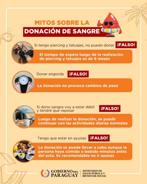 Otros centros: Contactar al CENSSA al (021) 204-668, 0962 320594 o Casa del Donante al 0986 455571.