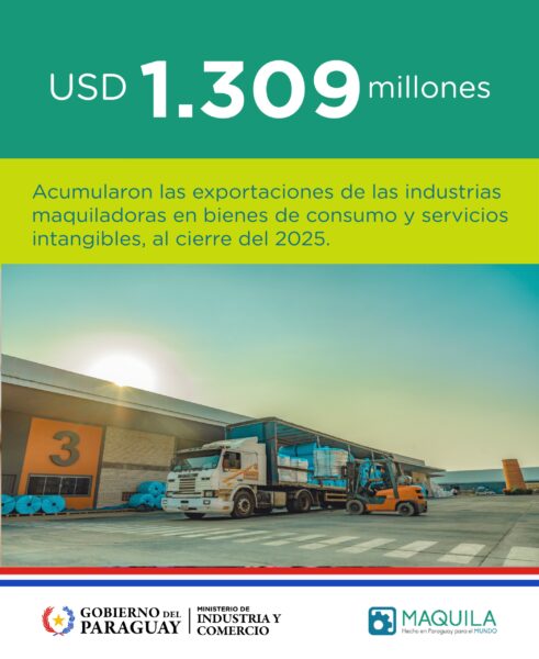 Las exportaciones de las industrias maquiladoras en Paraguay batieron un nuevo récord histórico en el 2025. Según datos del Viceministerio de Industria, alcanzaron un monto de USD 1.309 millones. Además, representan el 70% del total de productos paraguayos comercializados en el exterior, lo que confirma el rol estratégico que tiene el régimen de la maquila en la industria y la estructura productiva nacional.