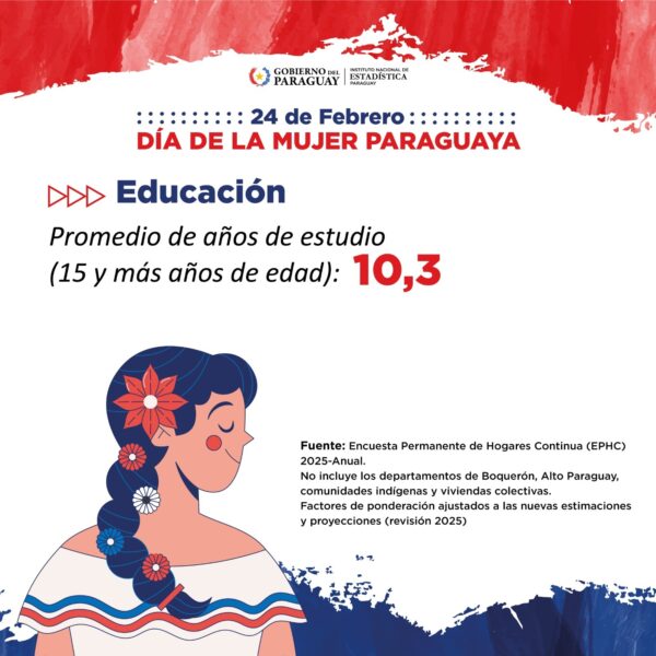 En conmemoración del Día de la Mujer Paraguaya, el Instituto Nacional de Estadística (INE) presentó datos actualizados de la Encuesta Permanente de Hogares Continua (EPHC) 2025, que destacan la participación demográfica, educativa y laboral de las mujeres en el país.