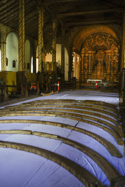 Estas elementos, retirados con precisión de su posición original, se montaron en la nave principal del templo para permitir estudios técnicos detallados. Los expertos confirmaron que están hechos de madera curva, desmintiendo la leyenda popular que los vinculaba a costillas de ballena. Ahora, se realizarán análisis para determinar su origen y estado de conservación.