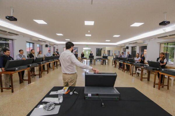 La Justicia Electoral impulsa las capacitaciones sobre el uso y manejo de las máquinas de votación, con ejercicios prácticos y resolución de consultas técnicas. Esta jornada contó con la presencia del ministro Jorge Enrique Bogarín González, presidente del Tribunal Superior de Justicia Electoral (TSJE).