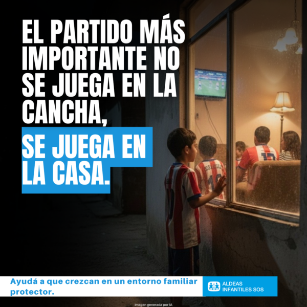 Los niños y las niñas tienen derecho a una familia protectora y afectiva, a ser niños y disfrutar de su infancia. Crecer lejos de un entorno familiar, sin protección y afecto, trae consigo consecuencias negativas en su desarrollo integral. Por eso, la organización Aldeas Infantiles SOS en Paraguay lanza su campaña “Este Mundial, ningún niño debería verlo solo”, visibilizando la problemática de niñas y niños que crecen sin un entorno familiar protector.
