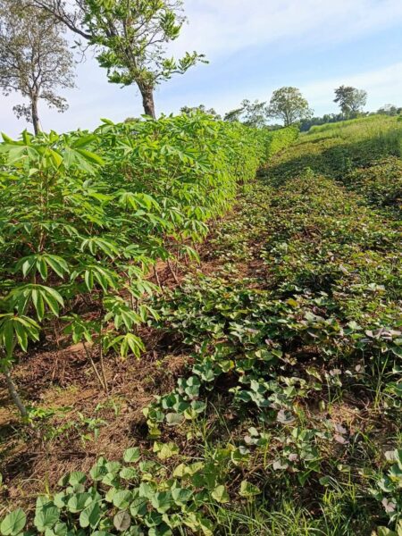 La mandioca presenta un buen desarrollo, aunque enfrenta limitaciones por la fertilidad del suelo y efectos residuales de la sequía. La batata evoluciona favorablemente, el repollo registra un crecimiento óptimo y el locote se encuentra en etapa de trasplante.