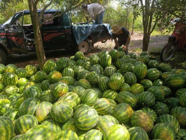 Por otra parte, en la comunidad de Cañada Guazú, distrito de Iturbe, técnicos del MAG realizaron un acompañamiento durante la cosecha del cultivo de sandía en la finca del productor Ariel Aguinalgalde. En este caso, la siembra se realizó mediante un sistema de riego, lo que permitió obtener una buena producción de frutos por planta. El seguimiento técnico estuvo a cargo del Ing. Agr. Juan Carlos Pereira y la Lic. Ana Martínez.