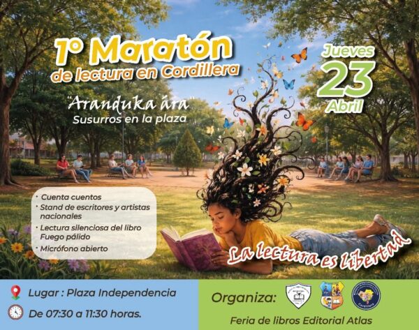 Por otra parte, en Eusebio Ayala, se desarrollará la primera maratón de lectura Andaduka Ára y feria del libro, organizado por la comunidad educativa del Instituto de Formación Docente de Eusebio Ayala, la Dirección Departamental de Educación de Cordillera y la Municipalidad de Eusebio Ayala. El objetivo es, simplemente, disfrutar de la lectura, compartir historias y promover la cultura en comunidad.