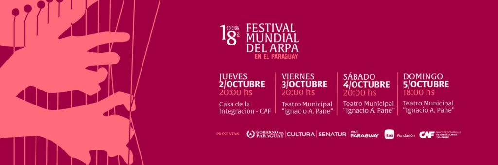 Durante cuatro noches, los sonidos del arpa, y especialmente del arpa paraguaya, harán vibrar al mundo desde el corazón de Asunción. Músicos de distintos puntos del planeta presentarán sus creaciones y las tendencias musicales, durante la 18ª edición del Festival Mundial del Arpa. La cita es entre el 2 y el 5 de octubre, en la Casa de la Integración CAF y en el Teatro Municipal “Ignacio A. Pane”, con acceso libre y gratuito. El festival reunirá a artistas nacionales e internacionales en el marco de conciertos, clases magistrales y talleres de formación. Participarán músicos de Francia, Japón, Colombia, Brasil, Polonia y Paraguay. Nuestro país estará representado por Víctor Espínola, Martín Portillo More, Ensamble Jehek, Martín Garcete, César D’Apollo y Gente Porã. Entre este jueves y sábado 2 y 4 de octubre, el encuentro es a las 20 horas; mientras que el domingo 5, la actividad comienza a las 18 horas. Los programas proponen un recorrido musical a través de géneros sinfónicos, impresionistas y folclóricos, y homenajes al maestro Nicolás Caballero, reconocido músico del arpa paraguaya, y a la promotora cultural Marlene Sosa Lugo, fundadora del festival. El jueves 2 de octubre, el Festival será en Casa de la Integración CAF, sito en avenida Mariscal López, entre avenida Brasilia y República Dominicana. La arpista Karin Carrera Matsuki (Japón/Paraguay) propondrá en su presentación un encuentro de culturas, mientras que Klara Poznachowska & Seba Ramírez (Polonia/Paraguay), presentarán un repertorio de integración. Por su parte, Francisco Giménez y su Kambapu, estarán a cargo de un show de danza y música con ballet Kamba Kua y ritmos afros y polca. El viernes 3, en el escenario del Teatro Municipal Ignacio A. Pane -sito en Presidente Franco esquina Chile-, se presentará la Orquesta Sinfónica del Congreso Nacional, bajo la dirección de Diego Sánchez Haase, con una obra inédita para arpa y orquesta. También se presentará la arpista francesa Isabelle Moretti, Dama de la Orden Nacional del Mérito, con un repertorio impresionista. Cerrará Martín Portillo. El sábado 4, también en el Teatro Municipal, el arpista paraguayo Víctor Espínola ofrecerá una propuesta innovadora, seguido por Martín Portillo More, Yofre Brito (Colombia), y el cierre tradicional con José López y su grupo Carapegüeño con el arpa de Antonio Rolón. El domingo 5, a las 18:00, nuevamente en el Teatro Municipal, el arpista paraguayo Papi Galán hará su presentación, con la Orquesta Indígena del Brasil, y bajo la dirección del maestro César D’apollo y su grupo Gente Porã en una confluencia musical con acordeonistas correntinos. Luego se presentará la joven agrupación Jeheka y el músico paraguayo Martín Garcete, sobre quien la organización informa: “Desde Costa Peña hasta los Alpes franceses, su arpa llevó el nombre de Paraguay por Europa durante seis temporadas. Grabó más de siete discos y hoy vuelve a casa como un verdadero embajador del arpa paraguaya”. Completarán la noche la Polka a lo yma, de Elías Balbuena, con los Ídolos de Piribebuy.