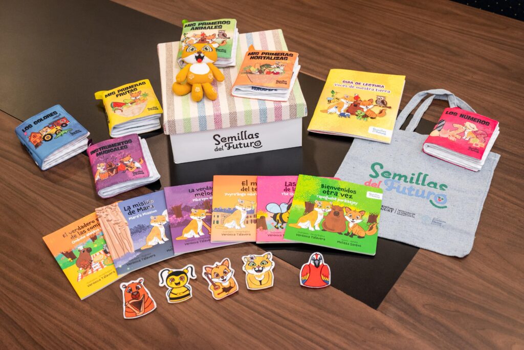 El Gobierno del Paraguay, a través del programa Semillas del Futuro, presentó la colección de libros infantiles Voces de Nuestra Tierra, impulsada por la Oficina de la Primera Dama y el Ministerio de la Niñez y la Adolescencia. Esta iniciativa educativa y cultural fortalecerá la atención integral en los Centros de Atención Integral a la Primera Infancia (CAIPI), que comenzarán a inaugurarse en todo el país. La colección consta de 12 libros diseñados para la primera infancia: seis de cartón y seis de tela, disponibles en español, guaraní e inglés. Abordan la riqueza natural y cultural paraguaya, como la fauna, sabores tradicionales, instrumentos musicales, paisajes, colores y costumbres cotidianas. La protagonista, Mara –una valiente yaguareté–, guía a los niños en relatos simples e ilustraciones vibrantes que despiertan curiosidad, imaginación y sentido de pertenencia. Cada caja de la colección se confecciona con hilos de algodón 100% en telares manuales de artesanos de Carapeguá, homenajeando el patrimonio cultural nacional. La autora es Melitta Santos y las ilustraciones corren a cargo de Verónica Talavera, quienes crearon un universo narrativo adaptado al desarrollo temprano. Los libros integrarán el material pedagógico de los CAIPI, espacios que ofrecerán estimulación temprana, educación y entornos seguros. El primer centro se inaugurará el 31 de marzo, iniciando una red nacional para miles de niños. Con Voces de Nuestra Tierra, Semillas del Futuro promueve el acceso equitativo a experiencias educativas de calidad, vinculando aprendizaje, identidad cultural y desarrollo integral desde los primeros años.