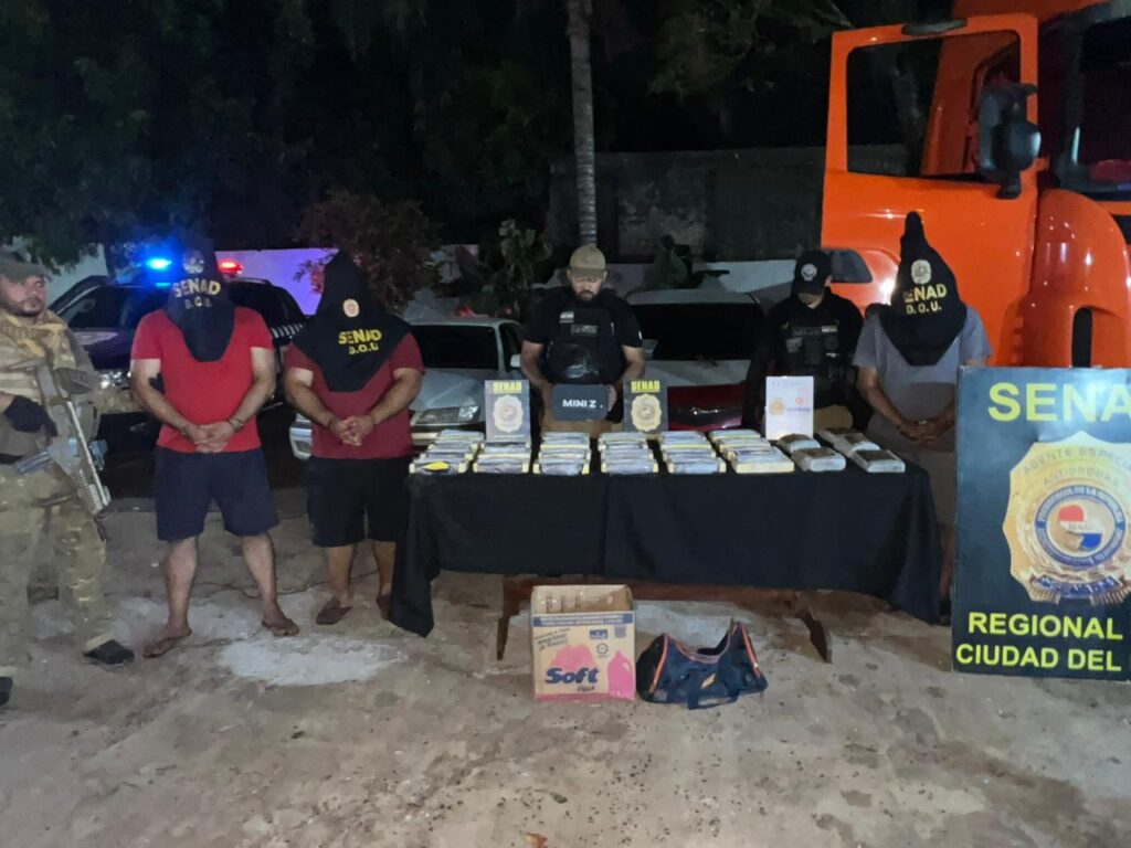 Agentes de la Secretaría Nacional Antidrogas (SENAD) desmantelaron una estructura criminal dedicada al tráfico internacional de estupefacientes, capturando a tres integrantes clave e incautando 24,5 kilos de cocaína y 5,5 kilos de marihuana tipo skunk destinados a Curitiba, Brasil. El golpe se dio en un operativo simultáneo denominado «Operación Dual», con apoyo del Ministerio Público. La intervención ocurrió en dos puntos estratégicos de Ciudad del Este. En el kilómetro 12 de la ruta, agentes interceptaron un tractocamión con tecnología de rayos X portátiles y canes detectores, hallando restos de drogas. Allí detuvieron a Fernando Ramón Esteche Ojeda (26), coordinador logístico de la banda, y a Carlos Damián Torres Velázquez (25), quien vigilaba en un auto particular. De forma paralela, en el kilómetro 14,5 de Minga Guazú, capturaron a Antonio Esteche Garayo (47), padre de Fernando y con antecedentes por violencia familiar, mientras manipulaba paquetes de droga en la cabina de otro tractocamión estacionado. Los narcos usaban camiones con carga legal de maíz como fachada. Una vez en ruta, contaminaban las cabinas con cocaína y marihuana para cruzar la frontera. SENAD secuestró los dos tractocamiones y un vehículo particular; uno ya tenía indicios de uso previo en narcotráfico. El operativo, coordinado por el fiscal Manuel Rojas, reafirma el compromiso de SENAD contra el narcotráfico transnacional que explota el comercio lícito. Las investigaciones continúan para desarticular toda la red.