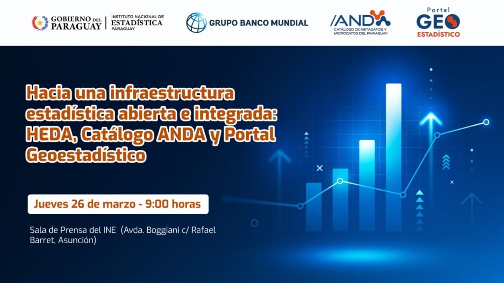 El Instituto Nacional de Estadística (INE) y el Banco Mundial (BM) darán a conocer este jueves 26 de marzo tres herramientas esenciales para el diseño de políticas públicas, durante un taller en el edificio técnico del INE, ubicado en Boggiani y Cirilo Rivarola, de 9:00 a 11:00 horas. Las plataformas destacadas son la Herramienta de Evaluación de Datos Abiertos (HEDA), el Catálogo Nacional de Metadatos y Microdatos a través del Archivo Nacional de Datos (ANDA), y las novedades en el Portal Geoestadístico del INE. Estas iniciativas, desarrolladas con apoyo del Banco Mundial en el marco de un programa de asistencia técnica para fortalecer capacidades estadísticas en América Latina, buscan potenciar la transparencia y el uso de datos en la toma de decisiones. HEDA: Primer diagnóstico completo en América Latina La HEDA ofrece un análisis estructurado de las capacidades del INE para abrir, publicar y mantener datos estadísticos. Paraguay se posiciona como el primer país de la región en aplicar esta herramienta de manera integral, superando experiencias previas subnacionales. Sus resultados guían la hoja de ruta del INE para avanzar en su política de datos abiertos. El Catálogo Nacional, integrado al Archivo Nacional de Datos (ANDA) del Sistema Estadístico Nacional (SISEN), documenta encuestas, censos y registros administrativos con metadatos estandarizados. Su nueva versión amplía la cobertura temática e institucional, sirviendo como puerta de entrada para investigadores, formuladores de políticas y el público en general, al promover la transparencia y el acceso a fuentes de datos. Con soporte técnico del Banco Mundial, el portal incorpora capas analíticas como el mapa de pobreza y el de riesgos de inundación fluvial, con integración territorial. Esta superposición identifica zonas de alta vulnerabilidad socioeconómica y exposición climática, facilitando la focalización de programas sociales, la planificación territorial y la gestión de desastres. Además, permite visualizaciones interactivas de indicadores socioeconómicos y ambientales. El INE enfatiza que estas plataformas son «vivas» para generar conocimiento basado en datos, invitando a la retroalimentación de usuarios, investigadores y entidades públicas. El evento abre vías para colaboraciones en análisis sectoriales y aplicaciones nacionales, fortaleciendo la infraestructura estadística del país.