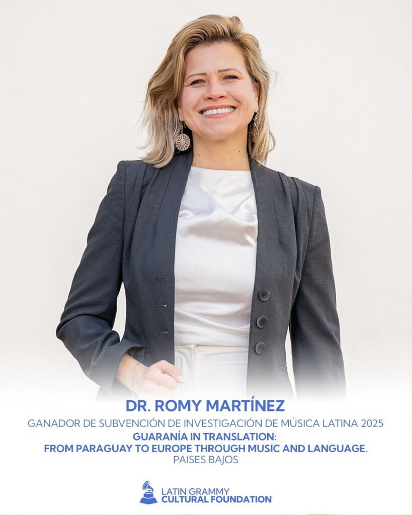 La doctora Romy Martínez, cantante, docente y etnomusicóloga paraguaya formada con una beca del Programa Nacional de Becas “Carlos Antonio López” (BECAL) del Ministerio de Economía y Finanzas (MEF), fue seleccionada como una de las seis ganadoras del Programa de Subvenciones de Investigación y Preservación de Música Latina 2025 de la Fundación Cultural Latin GRAMMY. Martínez realizó un posdoctorado en Diplomacia Cultural en Leiden University College, Países Bajos, gracias a BECAL. Su proyecto premiado, titulado “Guarania in Translation: From Paraguay to Europe Through Music and Language” (Guarania en traducción: desde Paraguay a Europa a través de la música y el lenguaje)”, busca preservar y difundir internacionalmente la guarania, género musical paraguayo creado en 1925 por José Asunción Flores y declarado Patrimonio Cultural Inmaterial de la Humanidad por la UNESCO en 2024. A través de conciertos, investigación y colaboraciones interculturales en el norte de Europa, el iniciativa involucrará nuevas audiencias en espacios multiculturales y plurilingües, manteniendo viva esta tradición y forjando puentes culturales que honran el legado musical de Paraguay. “La investigación y preservación nos permiten mantener el pulso de la música latina al proteger las historias, los ritmos y las raíces culturales para las futuras generaciones”, afirmó Raquel “Rocky” Egusquiza, directora ejecutiva de la Fundación Cultural Latin GRAMMY. La fundación destinará un total de USD 30.000 en seis subvenciones para proyectos similares. Creada por la Academia Latina de la Grabación, la entidad es un referente mundial en educación musical y ha donado más de USD 13,9 millones en la última década para impulsar creadores latinos mediante becas y programas educativos.