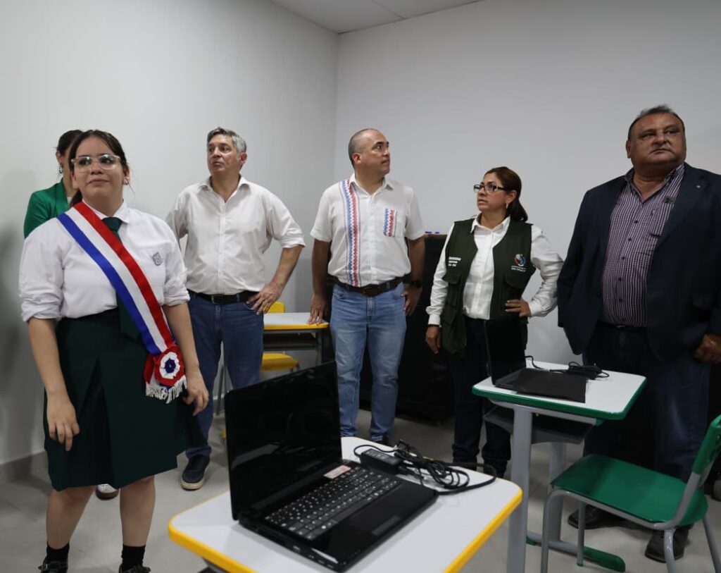 El Ministerio de Educación acompañó la inauguración de obras en el Col. Nac. Juana María de Lara , ubicado en Puerto Casado. El nuevo bloque escolar incluye cinco aulas modelo, la dirección, la sala de profesores, la biblioteca, el laboratorio y baños sexados, construidos con gestión del gobierno departamental. La apuesta por una educación de calidad se fortalece con este esfuerzo conjunto en Alto Paraguay, reflejando un compromiso claro hacia el desarrollo educativo en la región. En el marco de la jornada en el Chaco, el ministro de Educación Luís Ramírez visitó la Escuela Básica N° 97 Juan de Ayolas, en el distrito de Puerto Casado, «recorrimos el predio donde se construirán nuevas aulas modelo, reafirmando la prioridad en ofrecer espacios óptimos para estudiantes y docentes» destacó. Además, se dialogó con directivos, docentes, estudiantes y padres en la Esc. Gral. N° 2.894 Bernardino Caballero. Las instalaciones cuentan con aulas adaptadas a las necesidades específicas de la comunidad para potenciar el aprendizaje. «Desde territorio, celebramos también la inauguración de nuevas aulas y baños en la Escuela Indígena Santa Teresita del Niño Jesús, comunidad Riacho Mosquito. Este proyecto fue posible gracias a la inversión directa de la Gobernación de Alto Paraguay, ampliando oportunidades educativas para niños y jóvenes» indicó Ramírez. La educación es la esperanza de un futuro más brillante. Estas mejoras son clave para garantizar mejores condiciones de estudio y fomentar un desarrollo integral en estas comunidades.