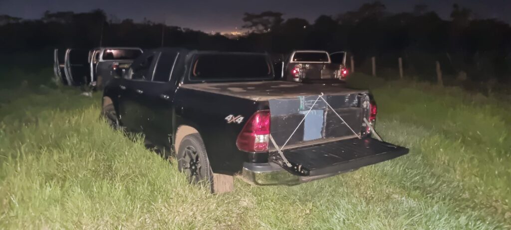 En una operación coordinada entre el Comando de Operaciones de Defensa Interna (CODI), la Fuerza de Tarea Conjunta, el Batallón de Inteligencia Militar, y la 3ª División de Caballería, con el apoyo de la Secretaría Nacional Antidrogas, se desplegaron tareas de observación y vigilancia en los distritos de Ybyrarobana, Katueté, La Paloma y Saltos del Guairá, en el departamento de Canindeyú. Alrededor de las 23:40 hs, en el barrio San Jorge, km 3 del distrito de Saltos del Guairá, se registró un enfrentamiento entre el personal del CODI y presuntos narcotraficantes. Durante el incidente, un vehículo del CODI sufrió varios impactos de bala, aunque no hubo heridos entre el personal táctico. La 3ª División de Caballería realizó un bloqueo de calles para impedir la fuga de los vehículos vigilados, garantizando el control total del operativo. Como resultado, las fuerzas de seguridad incautaron 12 camionetas de alta gama, 2 automóviles, 2 tractocamiones cargados con marihuana prensada y 1 tractocamión vacío. Además, se encontró el cuerpo de un hombre identificado como Sergio Daniel González Aguilera, quien portaba un chaleco táctico, armamento, casco, rodilleras y coderas. Cuatro personas fueron detenidas: Andrés Medina Brítez, Héctor Valentín Martínez Marín, Idalina Samaniego Bernal y Mauro Zarza Suárez. La operación logró la incautación de aproximadamente 70 toneladas de marihuana, según el Ministerio de Defensa Nacional.