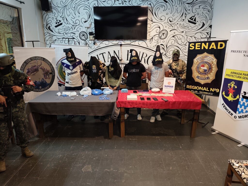 En un golpe contundente contra el narcotráfico, agentes de la Secretaría Nacional Antidrogas (SENAD) desarticularon redes de microtráfico en Pilar mediante cuatro allanamientos simultáneos. El operativo, enmarcado en el Plan de Acción contra el Abuso de Drogas – SUMAR, sacó de circulación 2 kilos 199 gramos de clorhidrato de cocaína, equivalente a más de 4.300 dosis que ponían en riesgo a adolescentes y jóvenes de la zona. Las intervenciones se llevaron a cabo en los barrios San Antonio, Loma Clavel y Obrero, con coordinación del fiscal Milciades Ramos y apoyo de la Fuerza de Tarea Conjunta (FTC). Como resultado, fueron detenidas cinco personas: Leidy Liz López González de 23 años, Alexis Ramón Gamarra de 27 años con prisión domiciliaria por tráfico de drogas, Leonardo Diosnel Velázquez de 24 años, Claudia Ezequiel Gómez Monges de 25 años y Hugo Javier Martínez Duarte de 26 años. Además de la droga, se incautaron dinero en efectivo, celulares, sistemas de circuito cerrado y otros elementos clave para la investigación. Este accionar reafirma el compromiso de la SENAD en la protección de comunidades vulnerables, priorizando la prevención y la lucha sostenida contra el narcotráfico en todo el país.