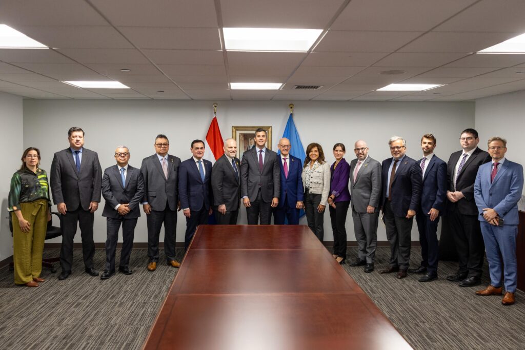En el marco de su visita a EE.UU para la Asamblea General de las Naciones Unidas, el presidente de la República, Santiago Peña, sostuvo un encuentro en Nueva York, con representantes de destacadas organizaciones judías como Forum for Cultural Diplomacy, Anti-Defamation League, B’nai B’rith International, Conference of Presidents y World Jewish Congress. Durante la reunión, dialogaron sobre la hermandad y los valores compartidos que unen a Paraguay e Israel. Además, las conversaciones incluyeron el desarrollo económico de Paraguay, destacando sus condiciones únicas en la región y las oportunidades de inversión que se presentan en el país. También abordaron la situación sociopolítica actual, reafirmando la postura firme de Paraguay a favor de la paz mundial. Este encuentro refuerza la cooperación bilateral y abre nuevas posibilidades para impulsar el crecimiento económico y la cooperación internacional entre Paraguay y estas organizaciones.